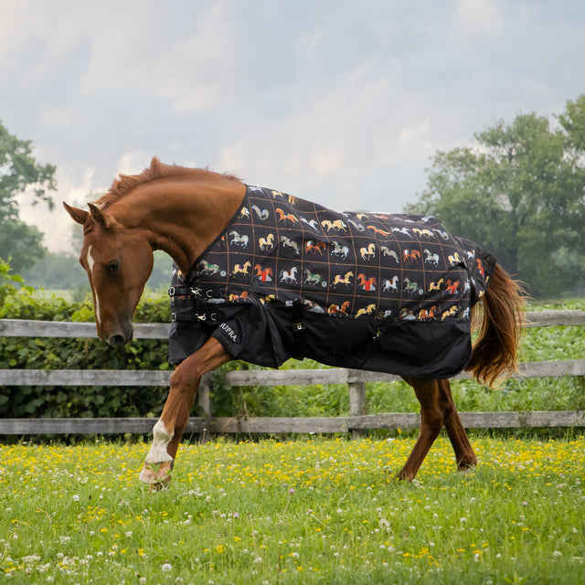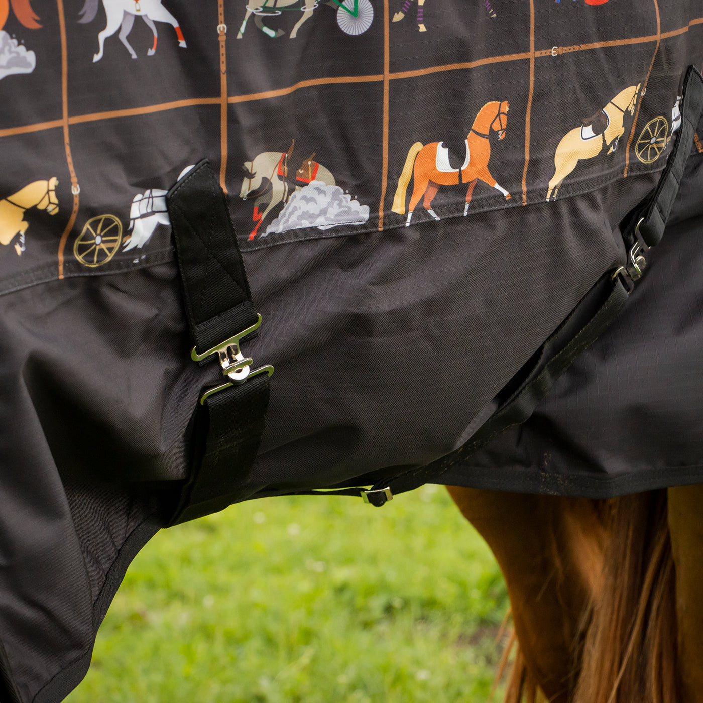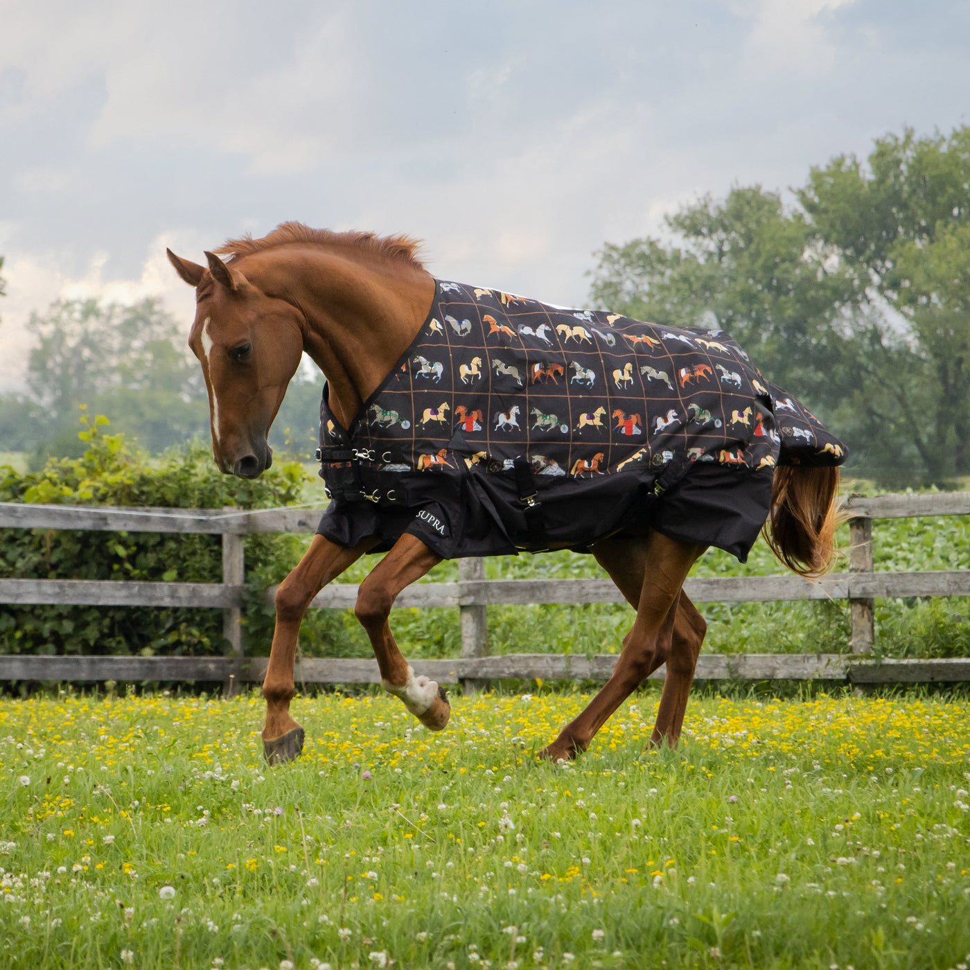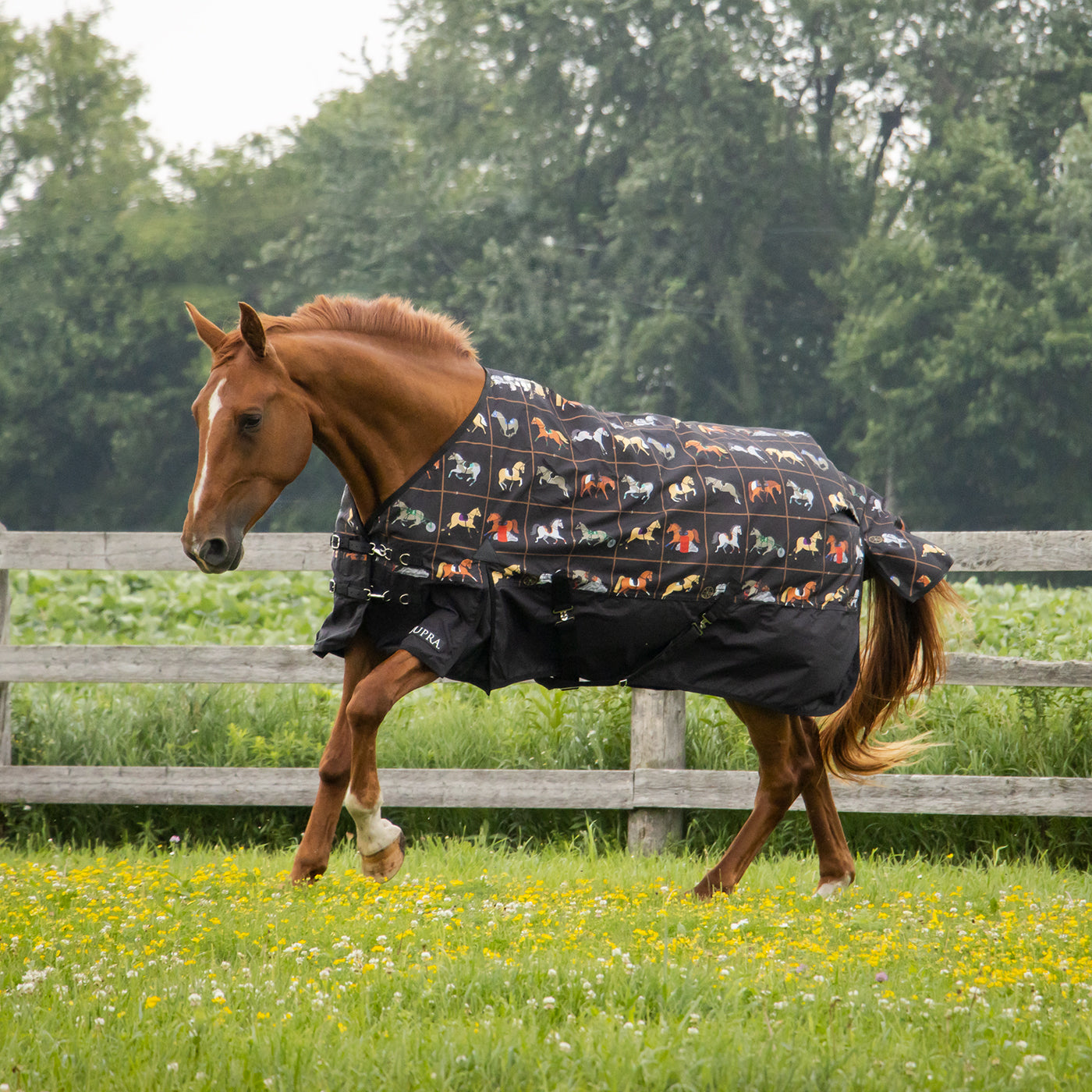 The Supra Rainsheet offers best-in-class protection against the elements! Features a waterproof and breathable construction with no back seams. Made with a 210 denier nylon lining and 600 denier exterior to help keep your horse comfortable and dry. Complete with cross-biased surcingles, double front buckle closures, and adjustable leg straps.