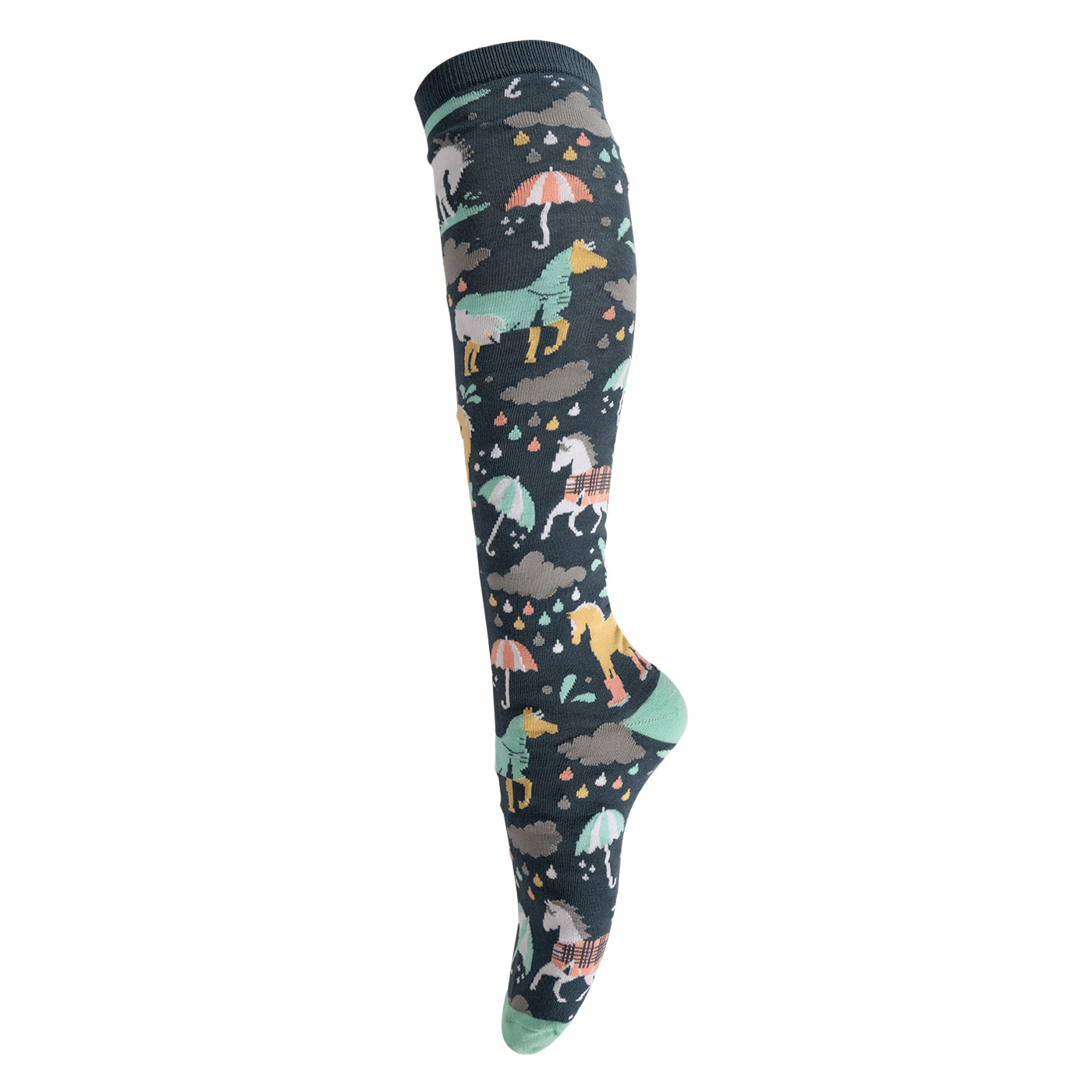 Four White Socks knee high socks are suitable for pairing with your breeches for a comfortable fit under tall boots or chaps. Complete with an equestrian print for added style, and is designed to absorb but not retain moisture, helping to keep your feet dry.