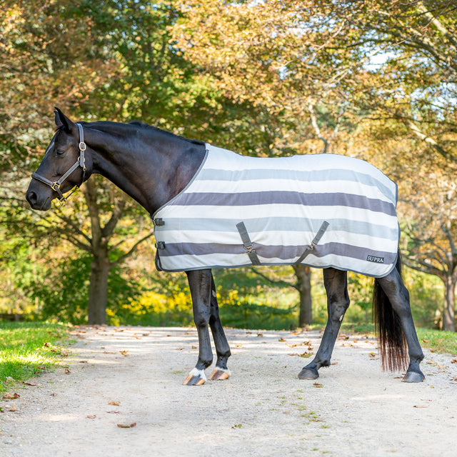 Functional and stylish, this fitted fleece cooler is made from moisture wicking fleece, perfect for use after riding or bathing. With crossed biased surcingles and double front straps, the Supra Fleece Cooler will offer your mount warmth and comfort in cooler weather. Designed for attended use, this cooler is not compatible with leg straps.