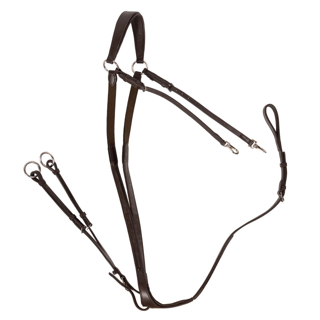 Designed with the same quality standards of the entire Mondega leather line, delivering in both aesthetics and performance. Beautifully crafted and simple in design, this breastplate has a padded wither and chest piece for comfort, and three adjustable points for a more customized, comfortable fit for your horse. Complete with an adjustable running martingale attachment that can be removed or interchanged to suit your training needs.