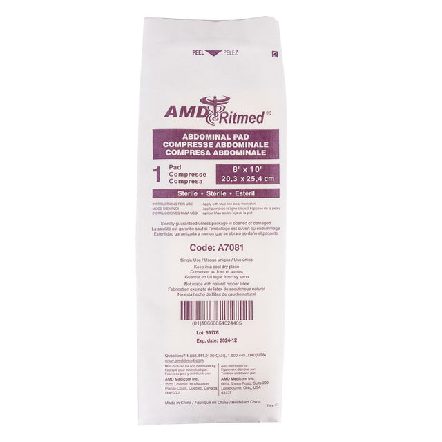 Useful for effective covering of cuts, scrapes, and burns, ABD pads don’t stick to the wound so they are easy to remove while also providing a cushion shield. Primary or secondary dressing sealed on all 4 sides. Each pad measures 8 in. x 10 in. Sterile. Sold individually.