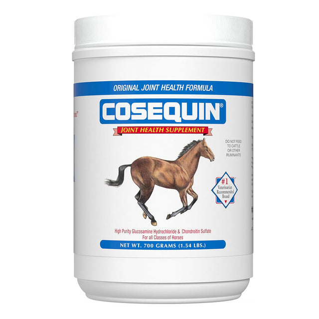 Cosequin is formulated with glucosamine and chondroitin sulfate to support joint health, the original researched formula contains proprietary ingredients, FCHG49 Glucosamine and TRH122 Chondroitin Sulfate. Cosequin Original comes in an easy to administer powder, for easy top dressing. The researched ingredients in Cosequin help protect the cartilage in your horse's joints by supporting a healthy cartilage matrix as well as inhibiting certain enzymes that break down cartilage. Veterinarian formulated with high-quality ingredients to support your horse's joint health, no matter their discipline or performance level.
