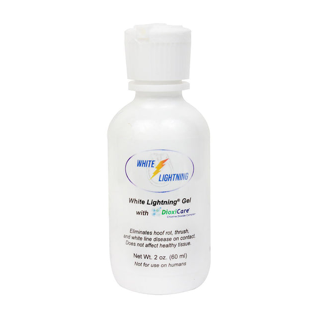 White Lightning® is a chlorine dioxide solution which is very aggressive in neutralizing bacteria, fungus and yeast. When mixed with equal parts white vinegar, White Lightning eliminates white line disease, thrush, abscesses, seedy toe and hoof rot. The chlorine in White Lightning helps remove the biofilm of bacteria and fungus leaving organisms vulnerable to oxygen. Quick-acting White Lightning helps prevent organisms from developing resistance. White Lightning won't harm healthy, live tissue, and is up to seven times more effective than chlorine bleach. Can be used on horses, pigs and cattle.