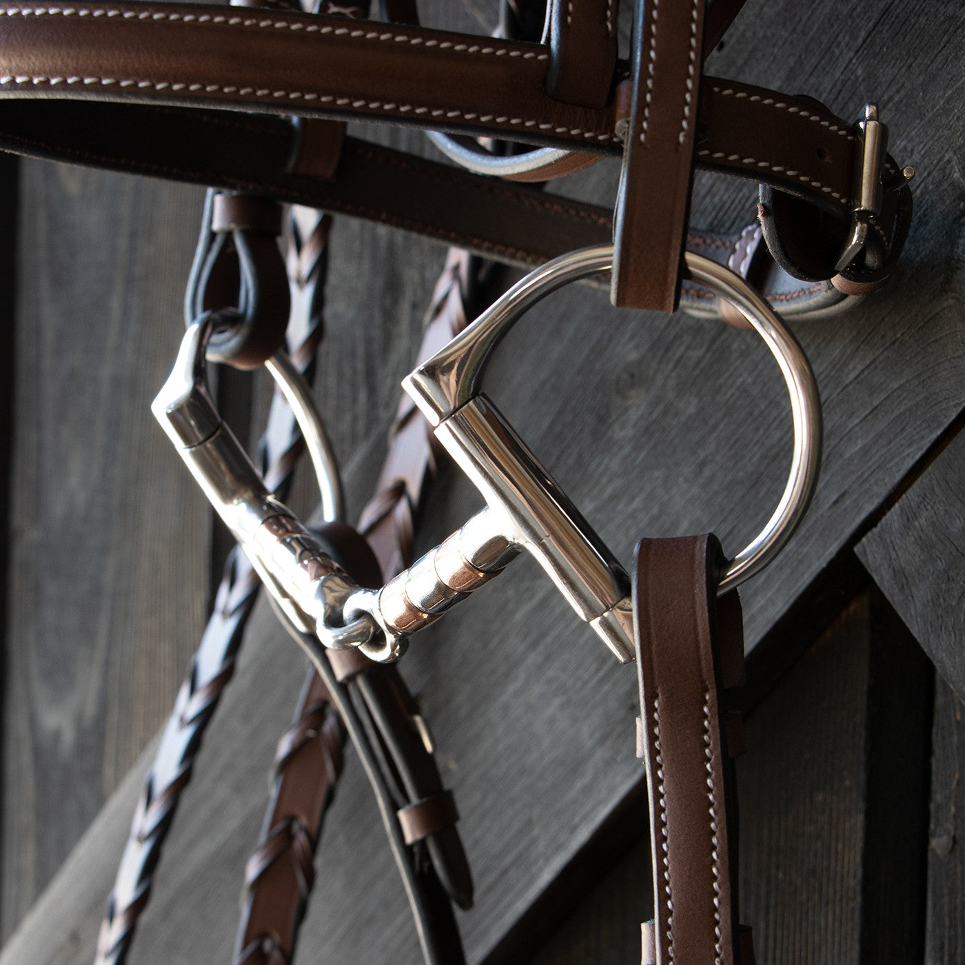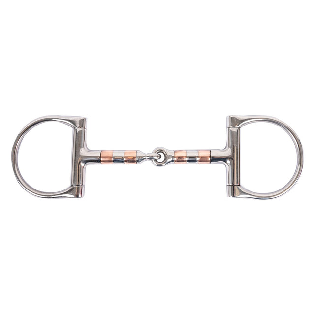 The EvoEq Dee Bit features a dee ring design that is seen in the schooling ring or show ring and features a copper roller mouthpiece. The copper mouthpiece helps to encourage the horse to salivate and is warmer to the touch.