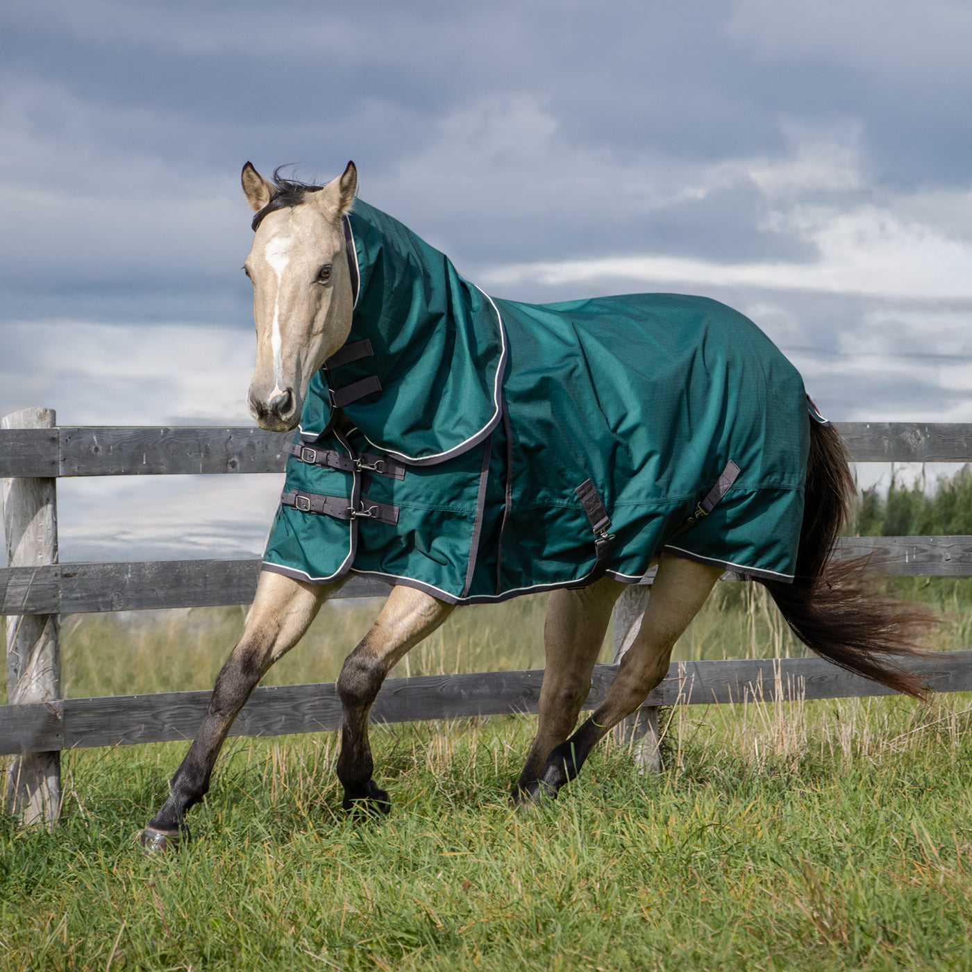 The classic Shedrow Rainsheet that you know and love, now available with a detachable hood! The 1200D outer shell is tough yet lightweight, while the deluxe nylon anti-sweat lining wicks away sweat and moisture for ultimate breathability. No back seam construction coupled with taped and sealed side seams offers excellent waterproofing. Complete with crossed biased surcingles for a secure fit, stretchy back leg straps, quick release front buckles with extended Velcro closure, top quality hardware and all reinforced stitching at the stress points. Detachable hood included.