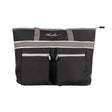 Use as a fashion bag or as a utility tote for horse shows or for grooming products; this stylish carry-all with accented trim has two shoulder straps and two zippered outside pockets to keep everything conveniently organized and accessible