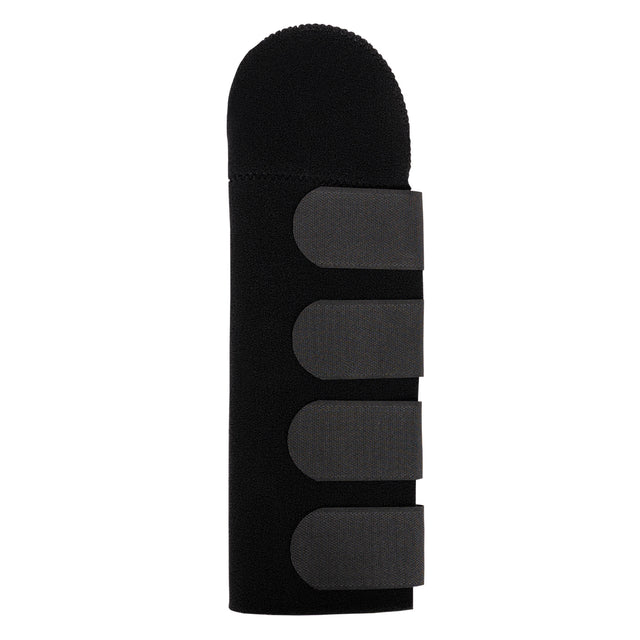 Created with heavy duty neoprene, the Shedrow Tail Wrap helps to prevent rubbing of hair and bruising of the tailbone. Its unique design protects the very top of the tail making it ideal for mounts that sit on or rub their tails during travel. The neoprene interior provides non-slip grip on your horse's tail without damaging hair. Finished with Velcro straps.