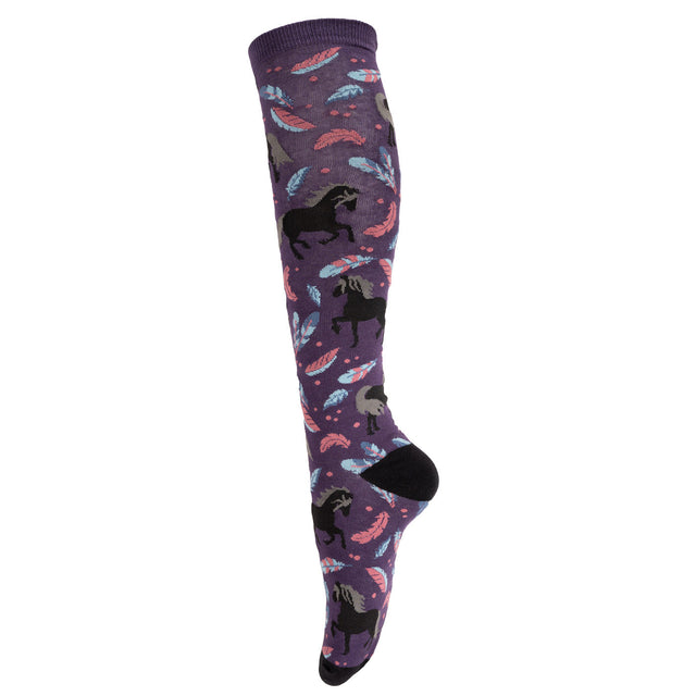 Four White Socks knee high socks are suitable for pairing with your breeches for a comfortable fit under tall boots or chaps. Complete with an equestrian print for added style, and is designed to absorb but not retain moisture, helping to keep your feet dry.