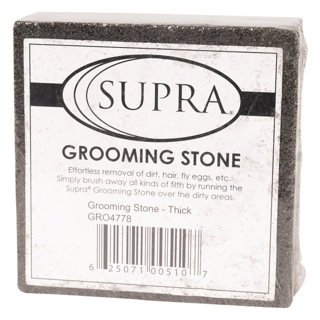 The Supra Grooming Stone is a long lasting and lightweight grooming tool that helps to remove dried mud, dirt, debris and shedding hair from the horse. The Grooming Stone uses a gentle surface action to grab loose hair without irritating the skin. May also be used on cats and dogs or on clothing and furniture.