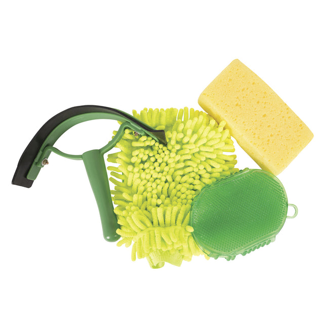 The perfect kit crafted to include everything you will need for a successful bath! Includes a sweat scraper, jelly scrubber, sponge, microfiber and wash mitt. The only thing missing is the horse!