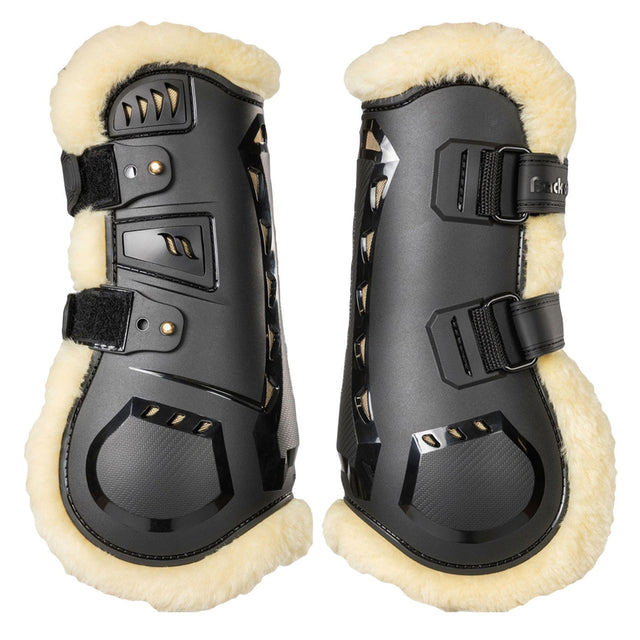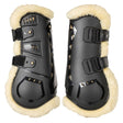 Back on Track Airflow Tendon Boots with Fur are well-designed leg protection with Airtech for optimum breathability and ventilation. 3D Mesh technology allows for a multi-directional anatomical fit providing comfort and support. Soft faux fur with Welltex® technology lines the inside. While the outer is made up of a durable shell, with shock-absorbing material along the tendon, this helps reduce the effect of hard impact and shocks. Air holes along the tendon and on the sides add extra ventilation. The straps are tightened with velcro closures for an individual fit. Two solid straps distribute the pressure evenly to ensure maximum comfort and protection. Protects front legs from strikes from hind legs often happens when landing a jump. Open front design best for jumping and cross-country.