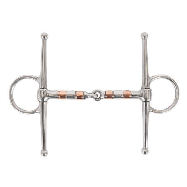 Full cheek snaffle bit featuring alternating copper and stainless steel rollers to help encourage play and salivation. Copper helps offer a warm sweet taste for the horse for enhanced comfort. Complete with full cheeks to help prevent the bit from being pulled through the mouth. Suitable for multiple disciplines.