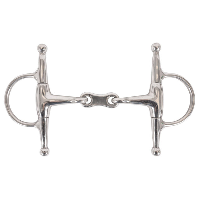 Crafted in durable stainless steel, the Metalab Full Cheek French Link Bit features eggbutt style cheeks to help prevent pinching against the lips and side of the mouth. The double-jointed French link mouthpiece features a short middle link to help reduce pressure on the roof of the mouth and can help to lessen the ‘nutcracker’ effect on the lower jaw. Suitable for multiple disciplines.