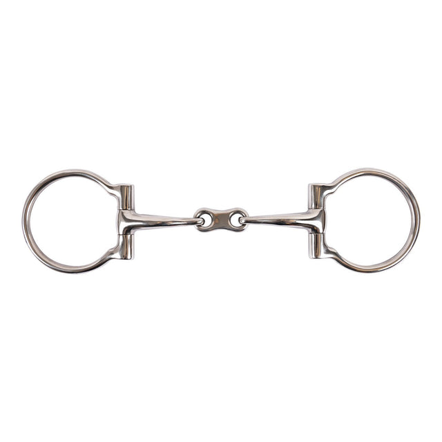 Three piece snaffle bit with stainless steel offset dee rings creates mild pressure on the horse’s tongue.