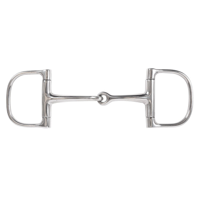 The EvoEq Racing Dee Single-Jointed Bit is a mild snaffle bit with "D" shaped rings to help with lateral control of the head. The sides of the rings are flat to provide slight lateral guidance while also helping to prevent the bit from sliding through the horse's mouth. Suitable for hunters, eventing, dressage, or racing.