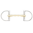Shaped like a D, the King Dee’s flat side provides slight lateral guiding while also helping to prevent the bit from being pulled through the horse’s mouth. King Dees are most popular in the hunter ring but can be seen in racing, eventing or dressage. The center of the mouthpiece features a mullen mouthpiece – an unjointed bit that is slightly curved to accommodate the horses tongue. The mullen mouthpiece is a mild bit that encourages the horse to raise its poll. Complete with a unique Apple scent and an age polymer mouthpiece to offer a gentle alternative for a happier horse.