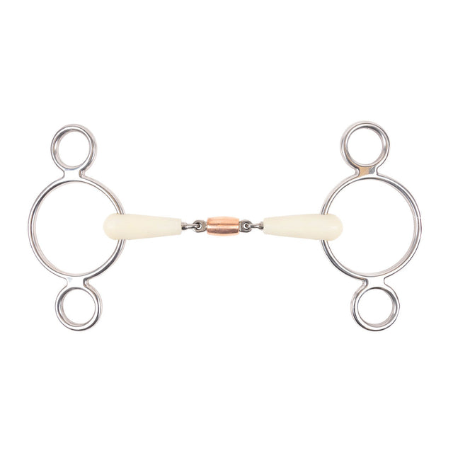 Elevator bits are often used for additional leverage on horses who lean or pull, helping the rider maintain balance and control. Happy Mouth bits offer a unique apple scent that encourage horses to accept the bit and the space age polymer mouthpiece offers an alternative to a metal bit. Complete with two rings and a 99.9% pure copper roller in the center of the mouthpiece that is soft and warm, increasing bit acceptance. The taste of copper encourages horses to salivate and keep a moist mouth.