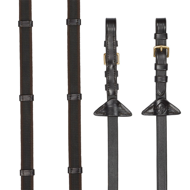 The Lemieux Rubber Grip Continental Reins offer practical reins with a light grip feel in the hand. Feature an anti-slip texture with a nylon lining to prevent stretching.