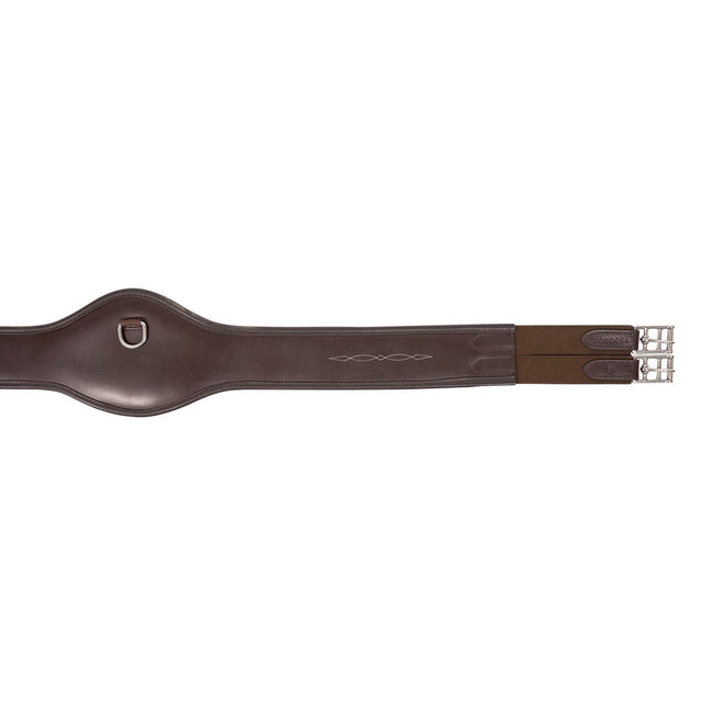 The Mondega Sternum Relief Hunter Girth offers comfort to your equine friend with a padded center section that is contoured to relieve pressure on the sternum bone. Helps to improve pressure distribution and stabilize the girth from slipping. Complete with fancy stitching for added elegance and strong, elastic webbing on both ends. Leather.
