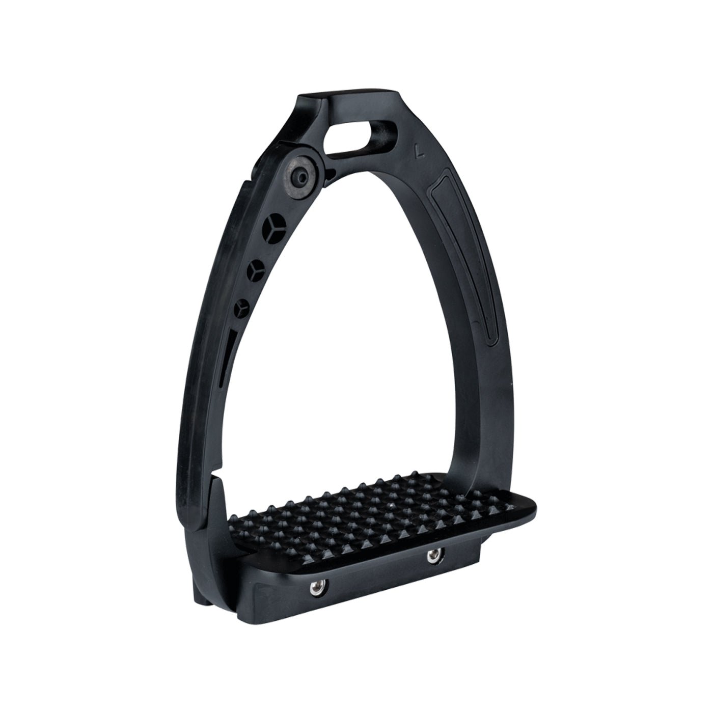 Made of high-quality aluminum with a 2 9/16 in. wide and 4 3/4 in. long tread. Features a hinge on the outside. The rider's weight causes the hinge to open in the event of a fall and prevents it from getting caught in the stirrups.