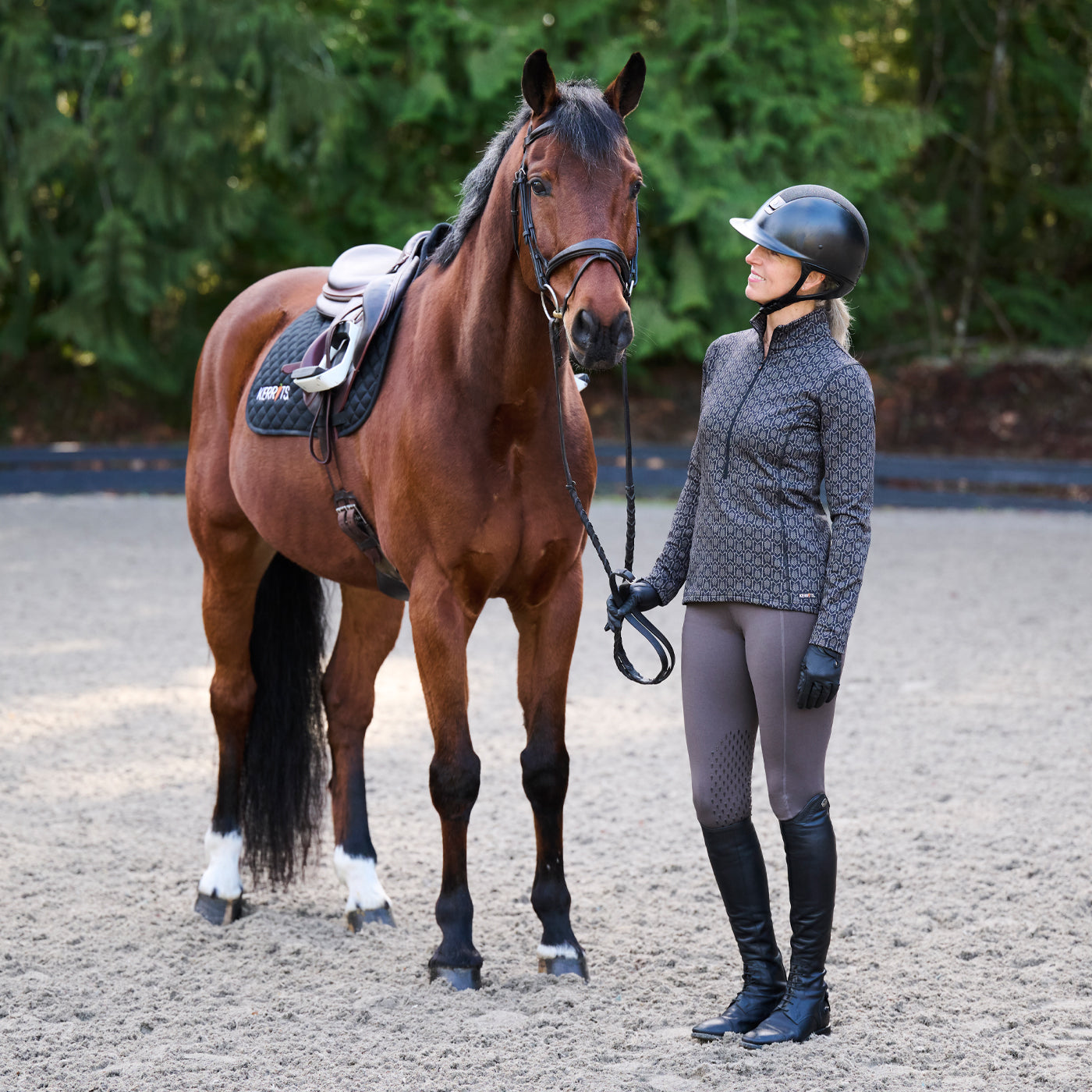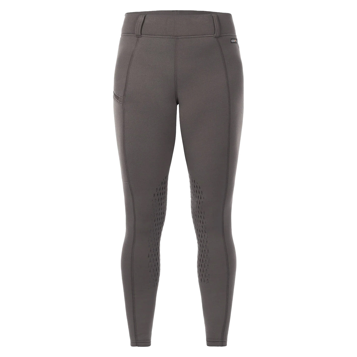 The Kerrits Power Stretch Pocket Winter Tights are perfect to wear during cold weather rides or doing winter barn chores. Featuring a cozy thermal weight brushed Polartec fleece lining and a matte exterior that sheds hay and horsehair. Kerrits Sticks™ silicone knee patches provide exceptional grip in the saddle. Stretchy and durable for optimal comfort and complete with a wide elastic waistband, belt loops and a secure zipper pocket for added function. Ideal to wear on their own or as an insulator layer.