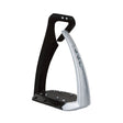 The Freejump Soft’Up Pro+ Stirrups are made in France with a 1.6cm wider floor, combined with the absorption capacity of spring steel, to provide an exceptional foot strike that is suitable for all disciplines. Features a single branch design with overmoulding to help relieve the rider's joints and the horse's back. Includes an Elastollan outer to help facilitate foot release in the event of a fall, with a carbon fiber foot grip for added durability and grip. Complete with an offset center of gravity to favour the descent of the heel, and an angled eye for added comfort, while following the natural swing of the leg. Created in a silver finish, suitable for the equitation or hunter ring.