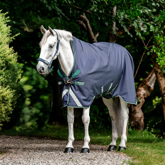 The Rambo Wug Turnout incorporates a high-cut neck for a snug fit which, by intelligent design also helps eliminates wither pressure. A good choice for horses of a narrower build and high withers, this waterproof turnout incorporates a V-front closure to offer extended freedom of movement so your horse can graze and move at liberty. The robust 1680D ballistic nylon waterproof and breathable outer contains a 200 g Thermobonded fiberfill to deliver unrivaled lasting warmth. The embossed anti-static, anti-bacterial, shine-enhancing lining helps keep your horse's skin healthy and happy. Complete with leg arches for ease of motion, reflective strips for increased visibility, a wipe clean tail cord and three adjustable cross surcingles incorporating the Rambo Safety Surcingle System.