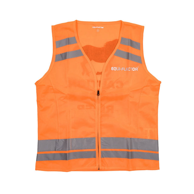 The Shires Equi-Flector Safety Vest provides great visibility with its reflective tape and bright color. Suitable for wear while riding outdoors or in hunting areas. Easily packs into a small area for travel.