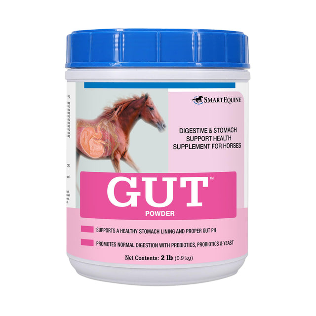 Smart Equine GUT Powder supports the horse’s full gastrointestinal tract by promoting a healthy stomach lining, normal digestion and bowel function. The proprietary blend of Equi GI pre- and probiotics help maintain a proper gut flora without negatively affecting gastric pH. Added ingredients promote normal digestive function in a palatable powder form. GUT Powder is a great addition to any horse’s diet who is training, traveling, prone to gastric upset, experiencing fluctuations in hay or other daily changes to their routine. This effective and economical gut support is an important staple supplement for most horse feeding programs.