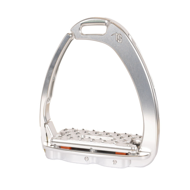 The Venice Safety Design of the Tech Venice Plus EVO Stirrups originates in a unique mechanism that allows the foot to release in case of need with minimal force. The spring installed allows the mobile part to remain closed during use, and to open when needed through the push of the foot. The mobile part is designed to return to its closed position so there is no protruding part. Features triangle shaped teeth that enhance the stability feeling, and is designed for water and mud.